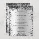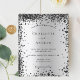 A modern, elegant wedding invitation. Faux silver looking background decorated with black confetti. Personalise and add your names and wedding details. Black coloured letters.