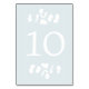 This Trendy Modern Wedding Reception Table Number card features original hand drawn Eucalyptus Plant Greenery in a light silver blue coloured background with White Eucalyptus and Number. Artwork by Paula Pecevich • La Bella Rue
