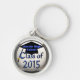 Elegant, cool and classy, "Class of 2015" graduation premium key chain. "Class Of 2015" in a blue with a gold border background trim colour text graphic design on a white 3d look background and a matching silver border (printed, not real silver) all around. Added to this key chain is a black graduation cap with a gold tassel. Remember the special day with this custom, classy graduation key chain. Rich looking, yet affordable! Easily customise with the graduate's name or the school name for a great keepsake gift and favour for the whole graduating class!