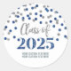 Silver Blue Confetti Graduation 2025 Classic Round Sticker