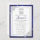 Silver Blue Diamond Damask & Tiara Sweet 16 Invite