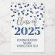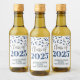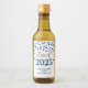 Graduation party custom mini wine bottle labels class of 2025 with silver and blue glitter pattern confetti.