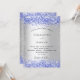A faux silver metallic looking background. Decorated with blue faux glitter. Personalise and add your names and party details.