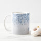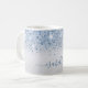 A faux silver looking background, decorated with blue faux glitter dust. Personalise and add your name written with a trendy hand lettered style script with swashes.