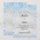 Faux silver looking background decorated with blue hearts. Personalise and add your names and wedding details. Black coloured letters.