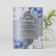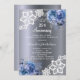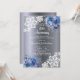 For an elegant and romantic 25th wedding anniversary, silverwedding. A dark faux silver looking background decorated with blue florals, roses, white lace. Personalise and add your names and details.