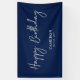 This simple birthday banner design features stylish script lettering "Happy Birthday" with custom texts. You can personalise the text. Perfect party decor for a modern navy blue & gold birthday party. More matching items available at my shop BaraBomDesign.