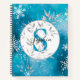 Personalised monogram Bullet dot grid notebook with blue and silver snowflake outline with a white circle and silver border in the centre and delicate silver leaves that add a touch of sparkle through the middle of the design. Personalise with your name and family initial, which contrast in a gorgeous winter blue and dark grey colour. The fonts and monogram colours can be changed if required. A beautiful festive Christmas gift for the doodler in your family.