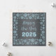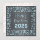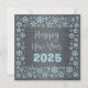Square wish card Happy New Year written in English in blue font with a lot of golden stars on a silver background - editable text and background