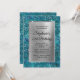 Decorative faux blue teal foil with abstract sparkly diamond studded design and a silvery grey brushed metal ombre foil rectangle overlay for your invite information.