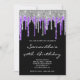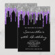 Silver Blue Violet Glitter Drips Black Birthday Invitation