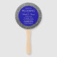 Simple, elegant, luxury chic glitter silver and royal blue wedding program hand fan with modern calligraphy script.