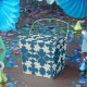This "Take Out Style" favour box features a single, silver blue leaf design with a mirror image that forms an ivy-like pattern. The background colour can be customised.