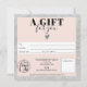 Modern pastel blush pink simple square gift certificate with chic silver glitter , add your logo, with a rose gold heart. Perfect birthday or Christmas gift certificate voucher.