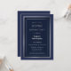 An elegant navy blue surprise 21st birthday party invitation featuring a twin silver lined border.