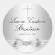 Baptism Sticker. Silver bow & diamond cross. Exclusive Zazzle. Customise with your own details. PLEASE NOTE all flat images! They Do NOT have real lace, Diamonds or Jewels!!