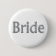 An elegant bridal party pin with a faux silver text design that says Bride.