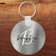Silver Brushed Metal Black White Script Monogram Key Ring