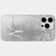 Silver Brushed Metal Glitter Monogram Name Case-Mate iPhone Case