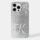 Silver Brushed Metal Glitter Monogram Name iPhone Case