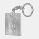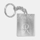 Silver Brushed Metal Glitter Monogram Name Key Ring