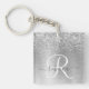 Easily personalise this trendy chic keychain design featuring pretty silver sparkling glitter on a silver brushed metallic background.