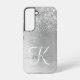Silver Brushed Metal Glitter Monogram Name Samsung Galaxy S22 Case