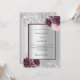 Faux silver looking background decorated burgundy and pink florals, flowers and faux silver glitter, sparkles. Personalise and add your names and wedding details. Black letters.