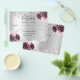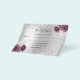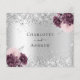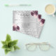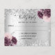 A faux silver metallic looking background, decorated with sparkling faux glitter and burgundy and pink florals. Personalize and add the reply by date and your names.