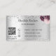 Silver burgundy florals elegant monogram QR code Business Card