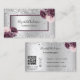 Silver burgundy florals elegant QR code Business Card