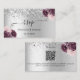 A faux silver looking background decorated with faux glitter, sparkles and burgundy and pink florals, flowers. Personalise and add your names, wedding website url for your own QR code and text.