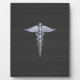Silver Caduceus Medical Symbol Carbon Fibre Style Plaque