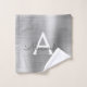 Silver Faux Brushed Metal Metallic Foil Elegant Monogrammed Bathroom Towel Set for an elegant modern glam and girly style.