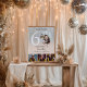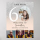 Celebrate sixty in style with this sparkling welcome sign featuring a faux silver glitter background, bold modern typography, and four personal photos—including a childhood throwback. A fun and fabulous way to greet guests and set the tone for a milestone birthday celebration.