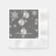 Add a festive touch to your holiday spread with a set of Silver Christmas Ornaments Paper Napkins. Napkin design features a trio of hanging Christmas ornaments with falling snowflakes and a dark grey background. Additional gift and holiday items available with this design as well.