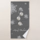 Add a festive touch to your bathroom decor this holiday season with a Silver Christmas Ornaments Towel Set. Towel design features a trio of hanging Christmas ornaments with falling snowflakes and a dark grey background. Additional gift and holiday items available with this design as well.