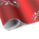 A very elegant red Christmas wrapping paper covered with a pattern of silver Christmas wreaths and silver reindeer to add a touch of sophisticated style to your gift wrapping these holidays.
