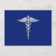 Silver Chrome Caduceus Medical Symbol on Navy Blue Postcard