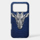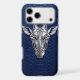 Infuse your tech with exotic elegance. This iPhone 17 Pro Max case features a stunning metallic silver geometric giraffe head in a sharp 3D chrome aesthetic. The modern industrial art style is set against a premium cobalt blue python snakeskin texture, creating a sophisticated and unique look. Perfect for animal lovers who appreciate high-end design and minimalist wildlife art. Designed to be a bold, luxurious statement for your phone.