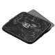 A silver chrome like Libra Zodiac symbol on a vintage Hevelius astrology constellation map black print background. A mix of modern urban racy and vintage designs for a great custom birthday gift idea.