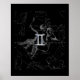 A silver chrome like Gemini zodiac symbol on a vintage Hevelius astrology constellation map print on black background. A mix of modern urban racy and vintage designs for a great custom birthday gift idea.