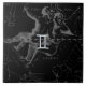 A chrome like Gemini zodiac symbol on a vintage Hevelius astrology constellation map print on black background. A mix of modern urban racy and vintage designs for a great custom birthday gift idea.