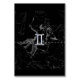 A silver chrome like Gemini zodiac symbol on a vintage Hevelius astrology constellation map print on black background. A mix of modern urban racy and vintage designs for a great custom birthday gift idea.