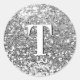 Silver Chunky Glitter Monogrammed Classic Round Sticker