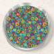 Silver & Colourful Retro Geometri Circles Pattern Coaster