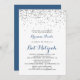 This silver confetti minimalist bat mitzvah invitation is perfect for a rustic bat mitzvah. The simple and elegant design features silver confetti and classic fancy script typography in blue and black.
