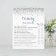 This silver confetti minimalist oh baby shower game is perfect for a rustic baby shower. The simple and elegant design features silver confetti and classic fancy script typography in blue and black.
