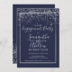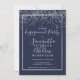Silver confetti navy blue typography engagement invitation