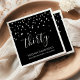 Help them celebrate their 30th birthday in style with this simple but elegant design, featuring faux silver triangular confetti sifting down on the word "thirty" in light grey handwriting font on a black background. Personalise it with the name of the honoree in light grey sans serif font, along with the occasion and date below in smaller light grey type.